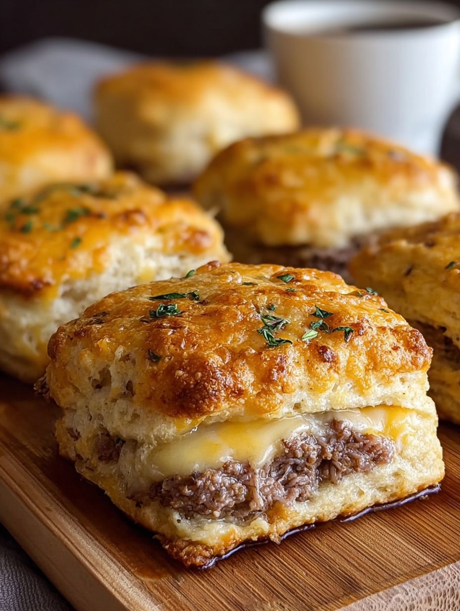 Cheesy Beef Biscuit Sandwiches